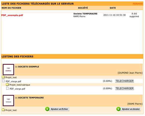 Listes des fichiers supprimés Listes des fichiers supprimés